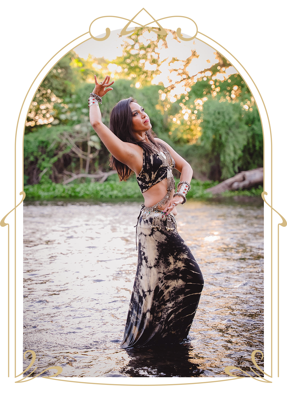 It’s a dance that transforms and reinvents itself, inviting you to move with intention, to feel deeply, and to reconnect with the mystical, the feminine, and the most authentic parts of yourself. In performance, this becomes an immersive experience — a journey through music, ritual, and visual artistry, where costumes, veils, swords, and other elements create a world of mystique that transports and awakens a timeless sense of wonder. And just as I share this on stage, I also guide it in class: offering a sacred space for students to explore, release, and remember who they truly are — through movement, rhythm, and presence.